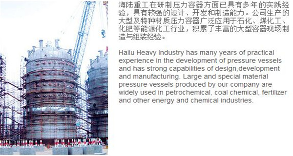 蘇州海陸重工股份有限公司位于江蘇省張家港市開發(fā)區(qū),是國內(nèi)一流的節(jié)能環(huán)保設(shè)備的專業(yè)設(shè)計制造企業(yè),目前并已初步形成鍋爐產(chǎn)品、大型壓力容器、核電設(shè)備、低溫產(chǎn)品、環(huán)保工程共同發(fā)展的業(yè)務(wù)格局。公司創(chuàng)建于1956年,注冊資本51640萬元,占地面積近50萬平米。公司下設(shè)八個控股子公司,一個余熱鍋爐研究所,在瑞士、北京、武漢、南京、上海、杭州、廣州等地設(shè)立分支機構(gòu),擁有雄厚的研發(fā)實力。公司秉承“科技領(lǐng)航、業(yè)界先鋒”的發(fā)展理念,注重研究廢熱、余熱利用和環(huán)境保護相結(jié)合的新技術(shù)研發(fā),自主設(shè)計能力居同行前列;公司承擔過國家863計劃,江蘇省科技成果轉(zhuǎn)化專項資金,榮獲國家科技進步二等獎,產(chǎn)品擁有核心自主知識產(chǎn)權(quán)并取得專利50多項;公司推行國際先進的管理體系標準和認證,擁有 A級鍋爐制造許可證,A1、A2、A3級壓力容器設(shè)計和制造許可證,取得了民用核承壓設(shè)備制造資格許可證、美國機械工程師學(xué)會(ASME)“S”、“U”鋼印,通過了ISO9001質(zhì)量體系認證、健康體系認證和14000環(huán)境體系認證;公司設(shè)備先進,裝備精良,專業(yè)嚴謹?shù)闹圃炖砟畲蛟斐銎焚|(zhì)非凡、質(zhì)量一流的“海陸”品牌聲譽。